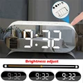 Led Fm Radio Alarm Clock Digital Mirror Clock Snooze Function Large Display Adjustable Lighting Table Clock Timer Desk Clock